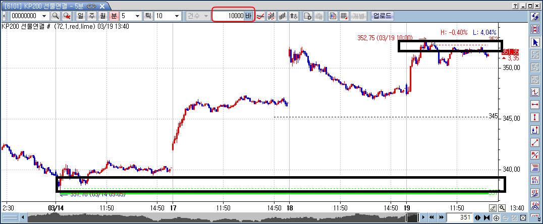 각 점은 각봉이 최종봉일때 그려진 값과 비교하고