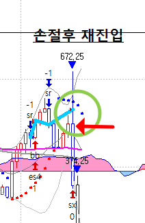 봉미완성시에 매도진입 손절되고 시가까지 가격하락한 것을 판단할 수 없습니다.