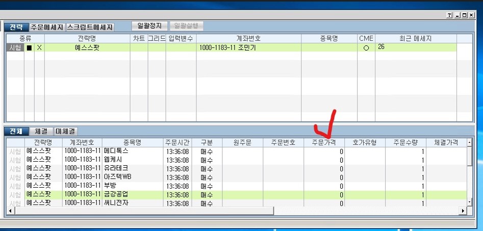 제가 서적을 참조해서 작성해놓은 예스스팟식으로 자동 매수 매도 주문을 해놓으니까