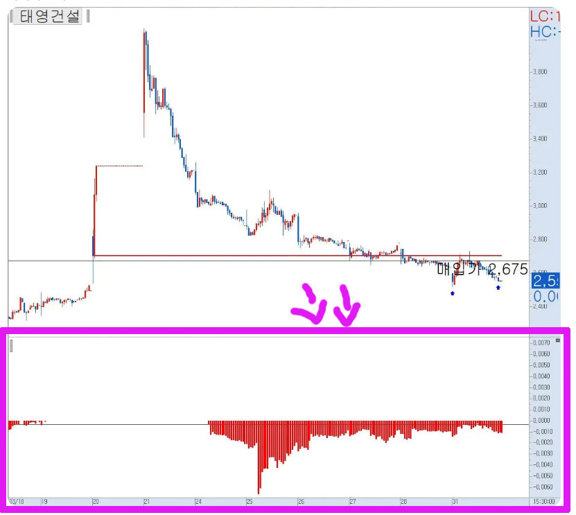 아래는 이미지는 키움 영웅문4 hts 차트입니다.