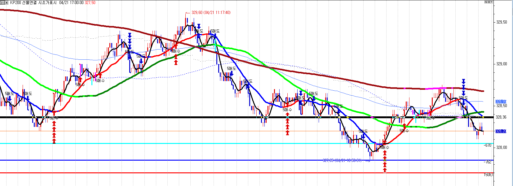 선물매수매도 건수의 차이를 가지고 고점 과 저점을 확인하는 수식인데