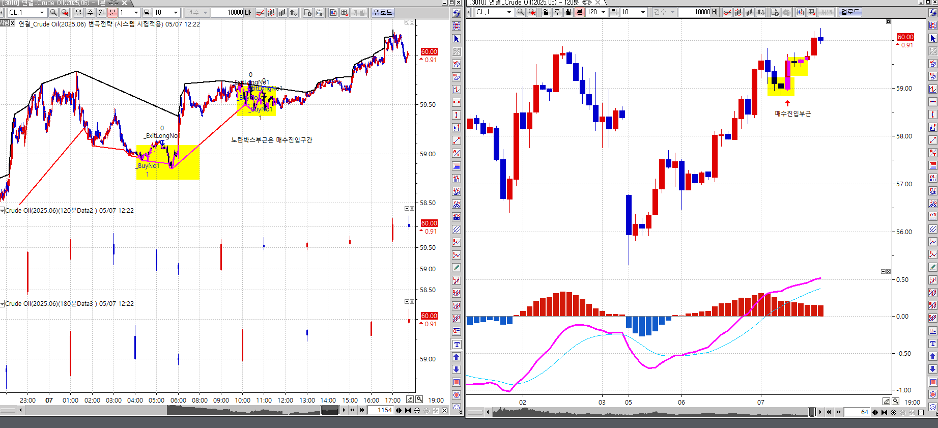 input : short(12),long(26),sig(9),신고신저기간(100),최근N봉(20);