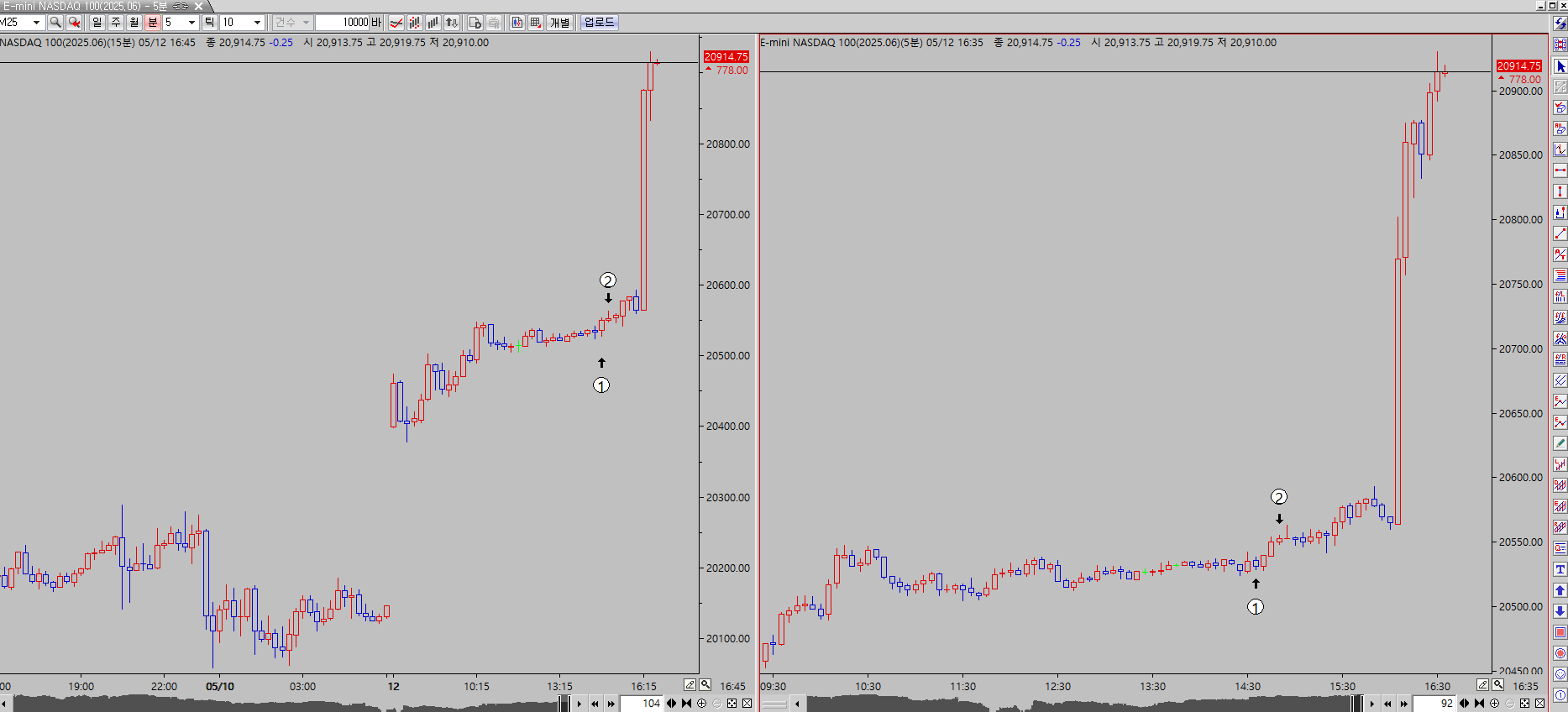 파일좌측의 1,2번처럼 15분봉 고가갱신시