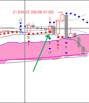 > 첨부된 사진처럼 한개의 봉에서 파라볼릭 하단 상단 지표를 모두 돌파하였는데 사진에서는