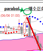 1번은 분명히 파라볼릭매수신호인데 매도진입이 되었습니다.