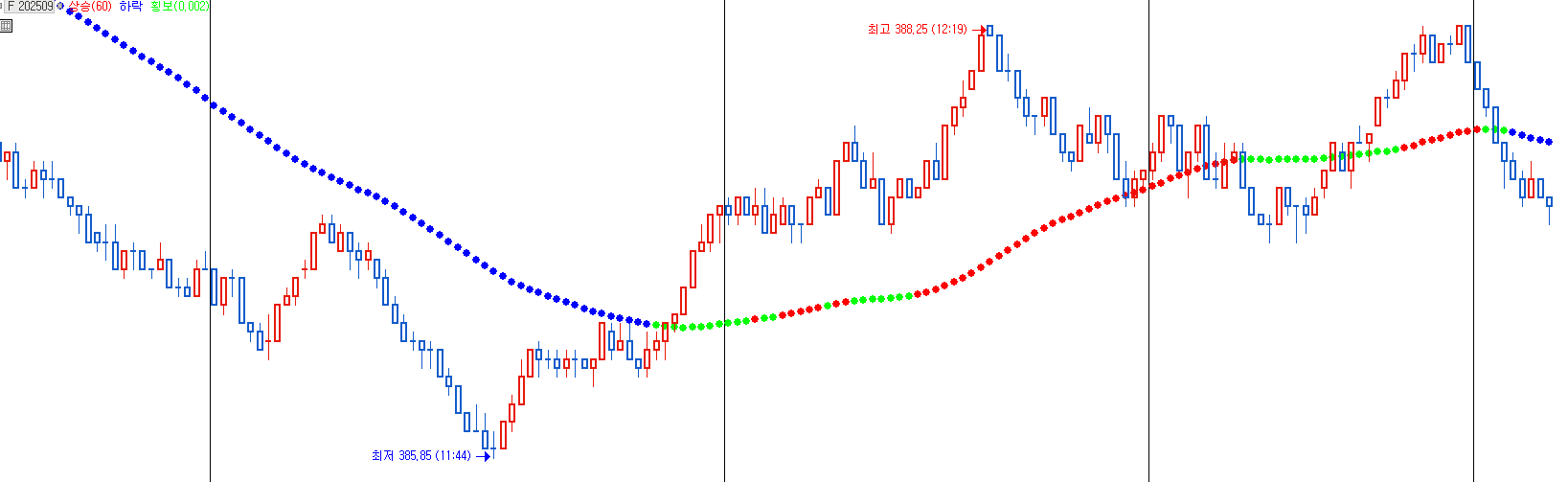 첨부 그림처럼 이동 평균선에 횡보율을 대입해서 색을 다르게 만들수 있는지요.