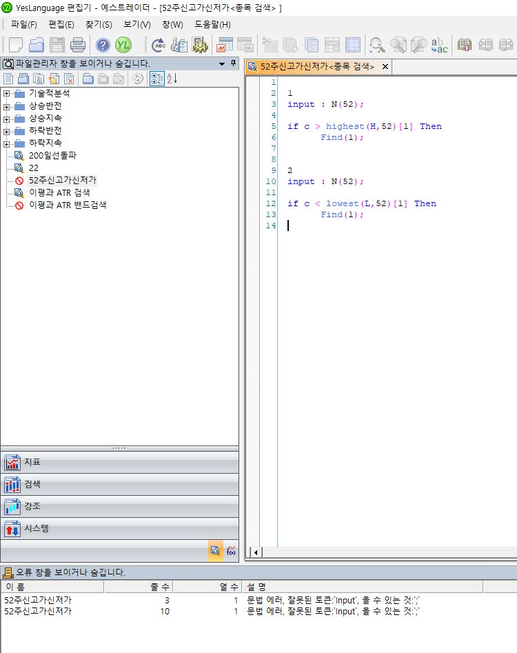 종목검색화면에서 주봉으로 지정하고 검색하시면 됩니다.