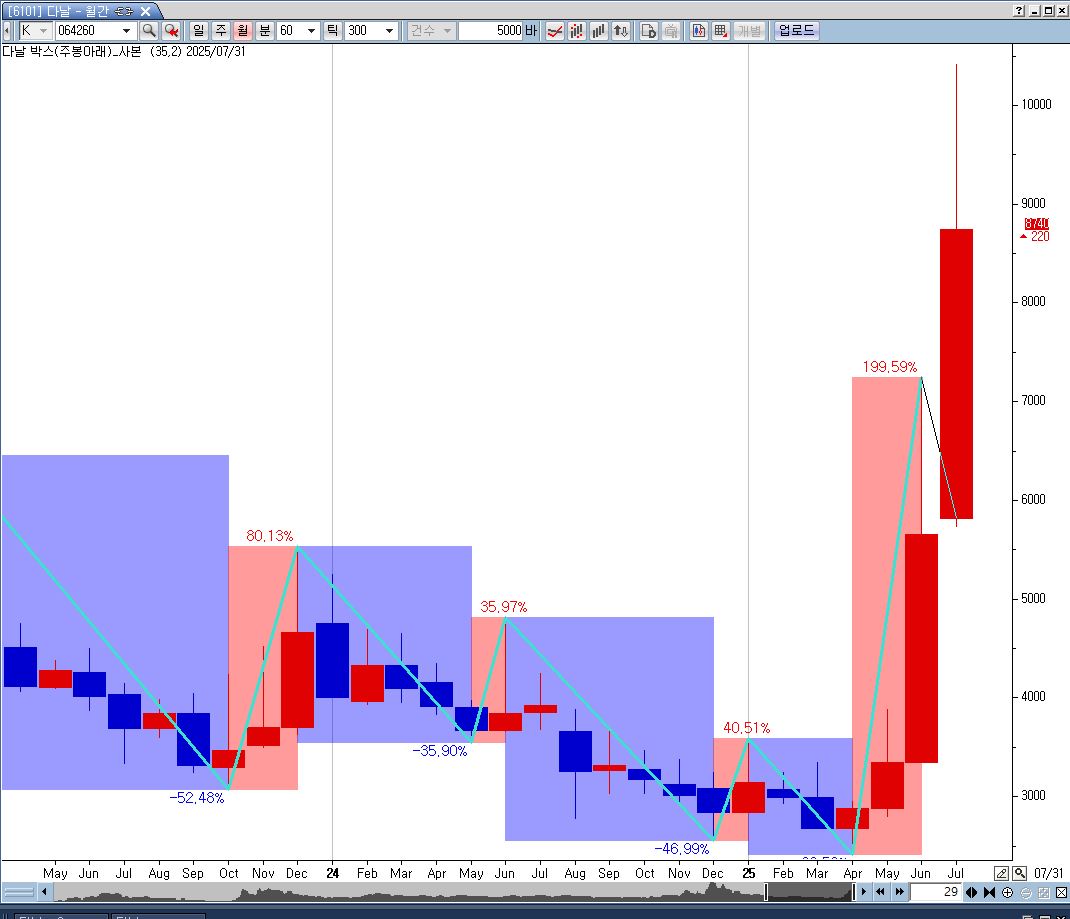 > 차트 그림에서와 같이 월봉최근캔들(추세선이 고점까지 되게끔)에서 추세선이 고점까지 안되는데 수정부탁드립니다
