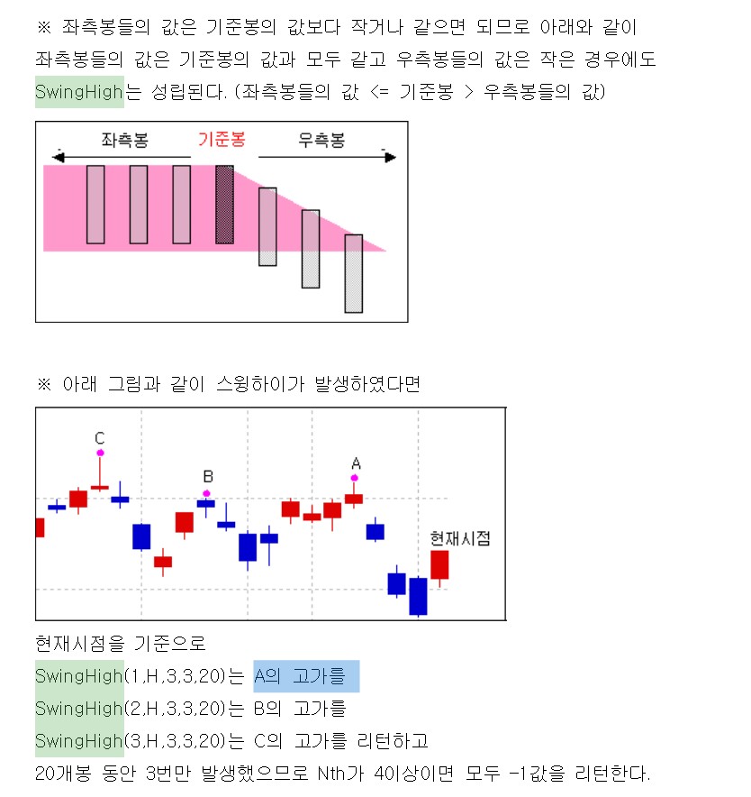 아래는 SwingHigh 수식입니다.