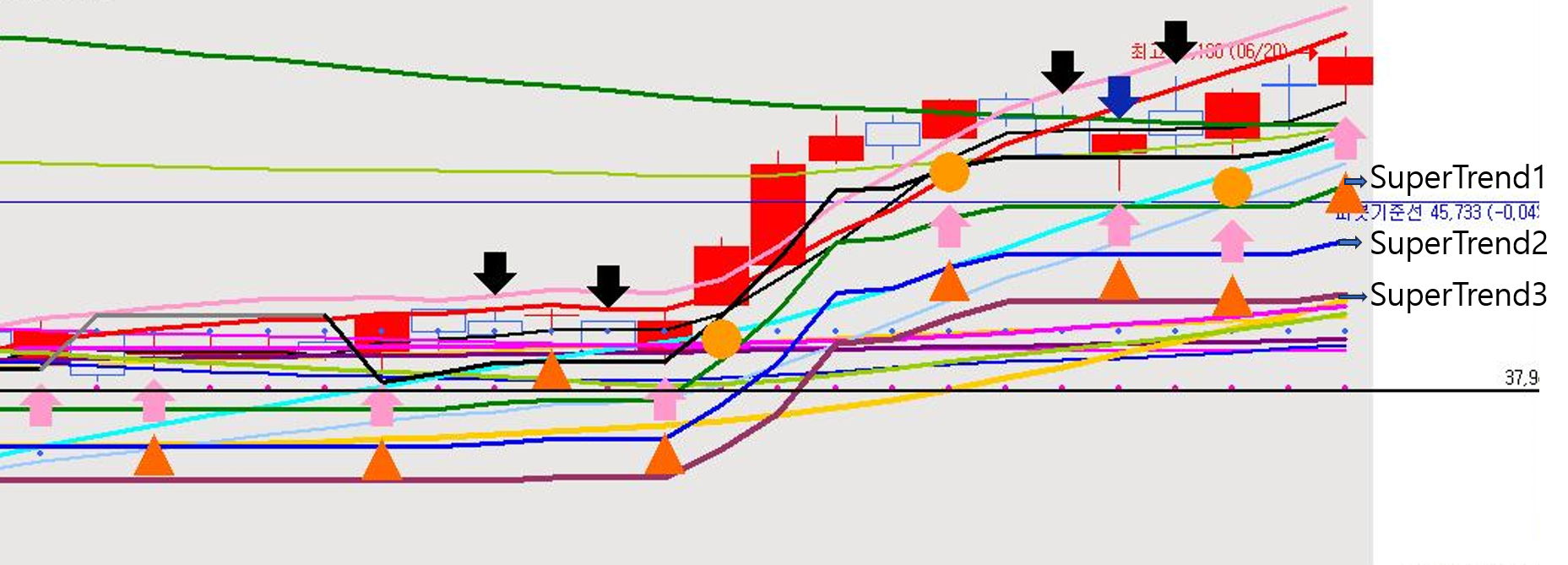 조건 = C >= SuperTrend1 && C>SuperTrend2 && C>SuperTrend3;