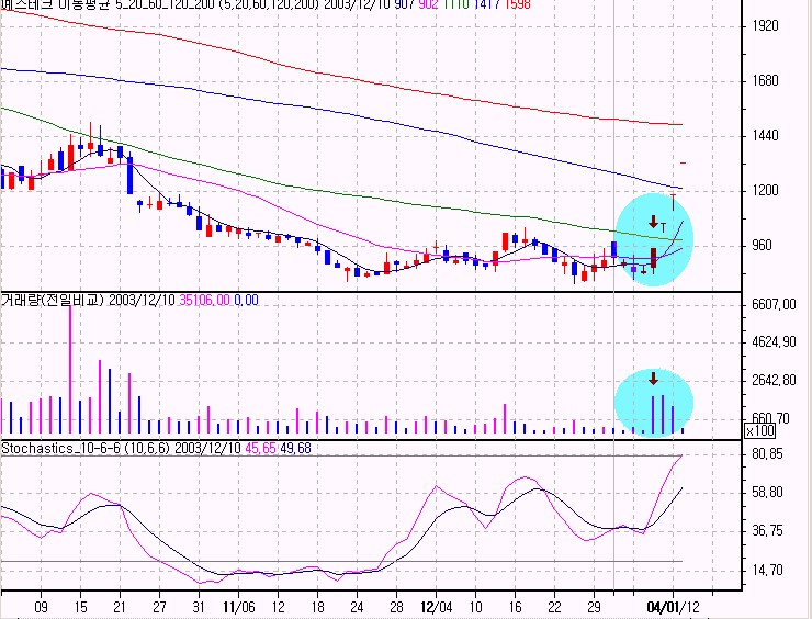 20일 이동평균선을 돌파를 하면서 거래량은 최근 2~3개월동안의 거래량을 초과하는