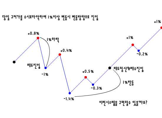 아래는 당일고가-1% ,당일저가+1% 지점에 대한 지표식입니다.