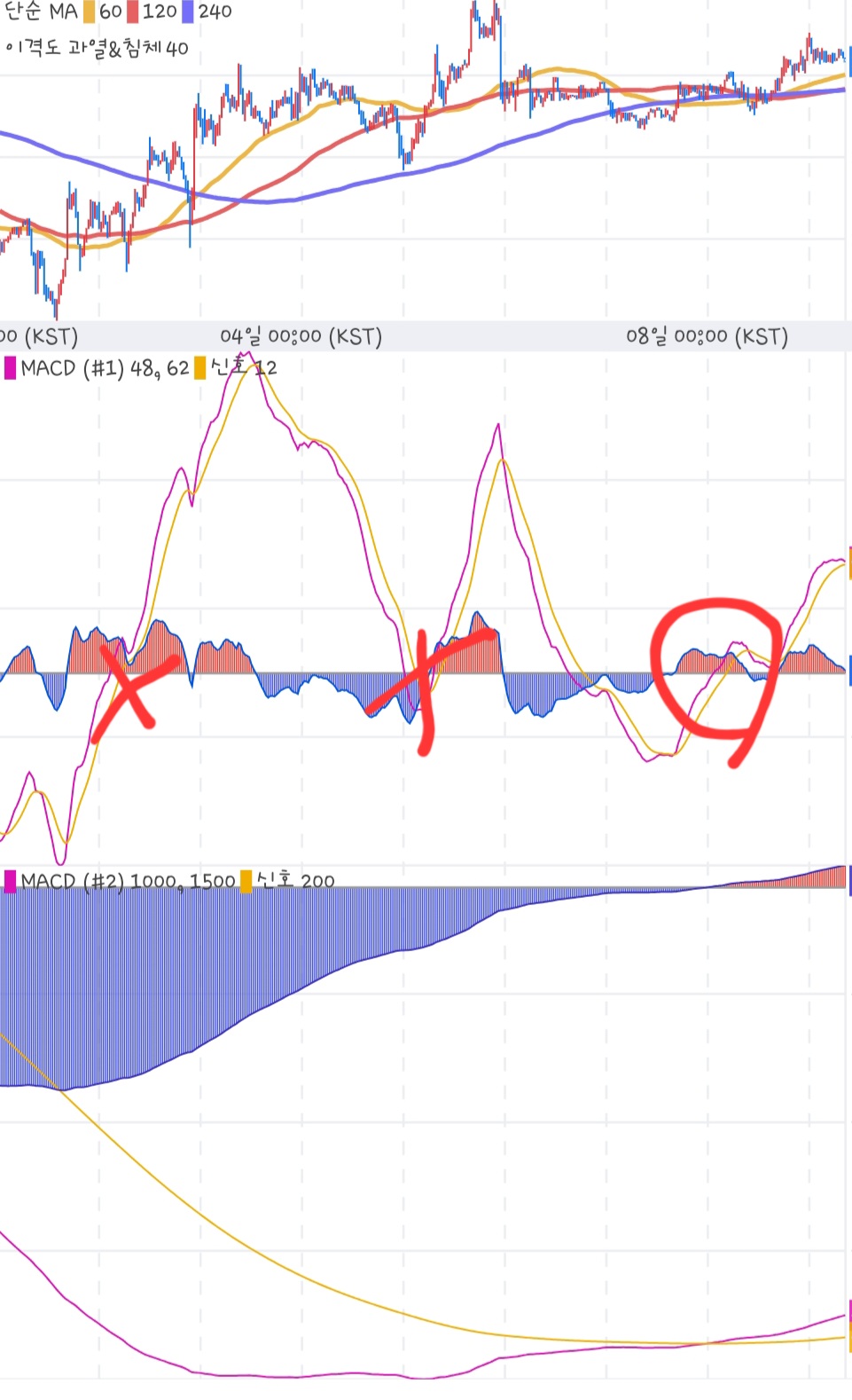 매수가 될때 예외구간을 정하고 싶습니다. CrossDown(macdv2,0) 한 상황 부터 macds2 < 0 구간에 CrossUp(macdv1,0) 하여도 매수가 안되게 매수를 제한하고 싶어서 수식을 만드는데 잘 안되네요... 예외구간을 정하는 수식은 어떻게 해야될까요?