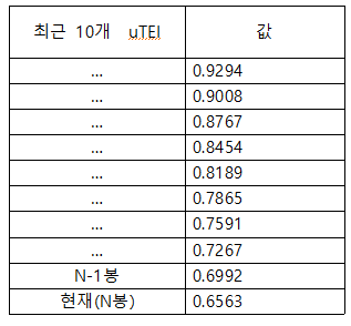 ** 이전 uTEI(바로 직전 봉의 값)**를 0.6992 라고 가정