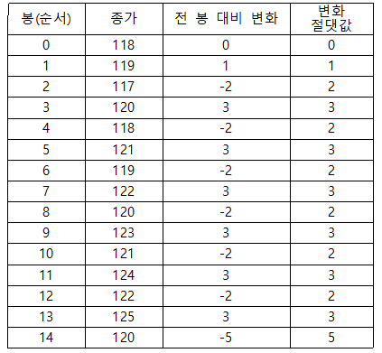 14봉 전 종가 118 → 현재 종가 120