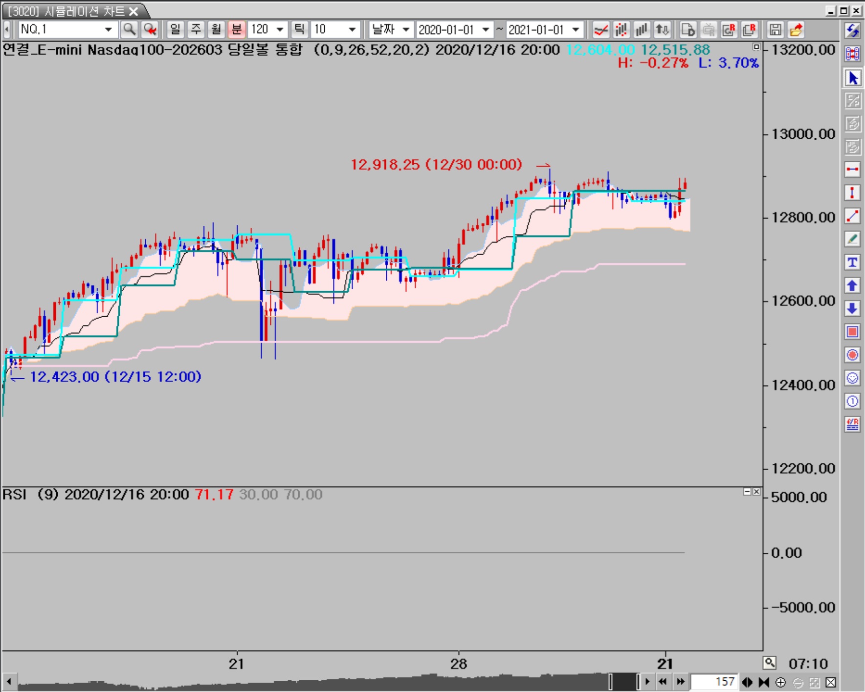 보조지표가 일직선으로 나옵니다. 아마 나스닥 가격 값과 같이 취급되는 것 같아요. RSI, MACD, 스토캐스틱, 거래량 웬만한 지표 모두 그렇습니다.