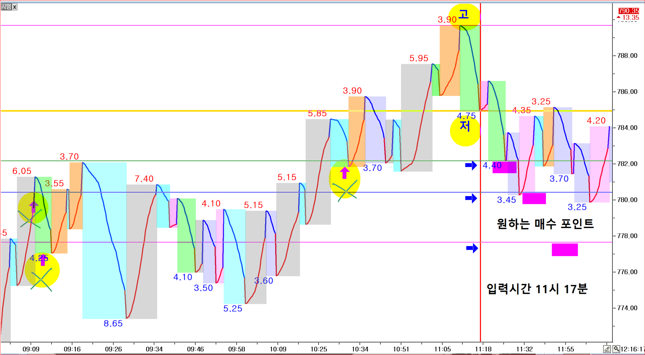 input : 고점(789.70),저점(784.95);