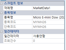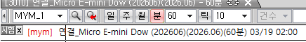 스팟주문내역에는 진입과 청산주문이 되었다고 나오는데 실제는 진입주문과 청산주문 내역이 없습니다. (마이크로 다우선물입니다.) 아래의 식이고 아래처럼 종목명등은 설정되어있습니다.