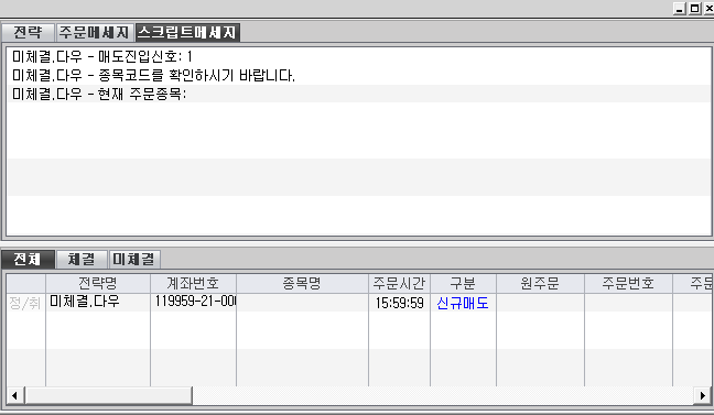 어제 통화로 종목코드를 수정하여 주셨는데 여전히 이렇게 나옵니다. 여전히 주문이 안들어갑니다.