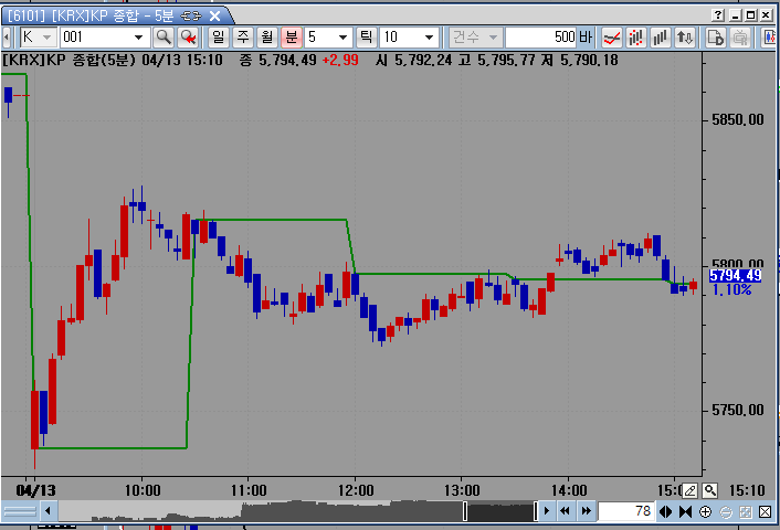 위 식은 개장 후 90분 마다 시가를 선으로 그은 지표식입니다