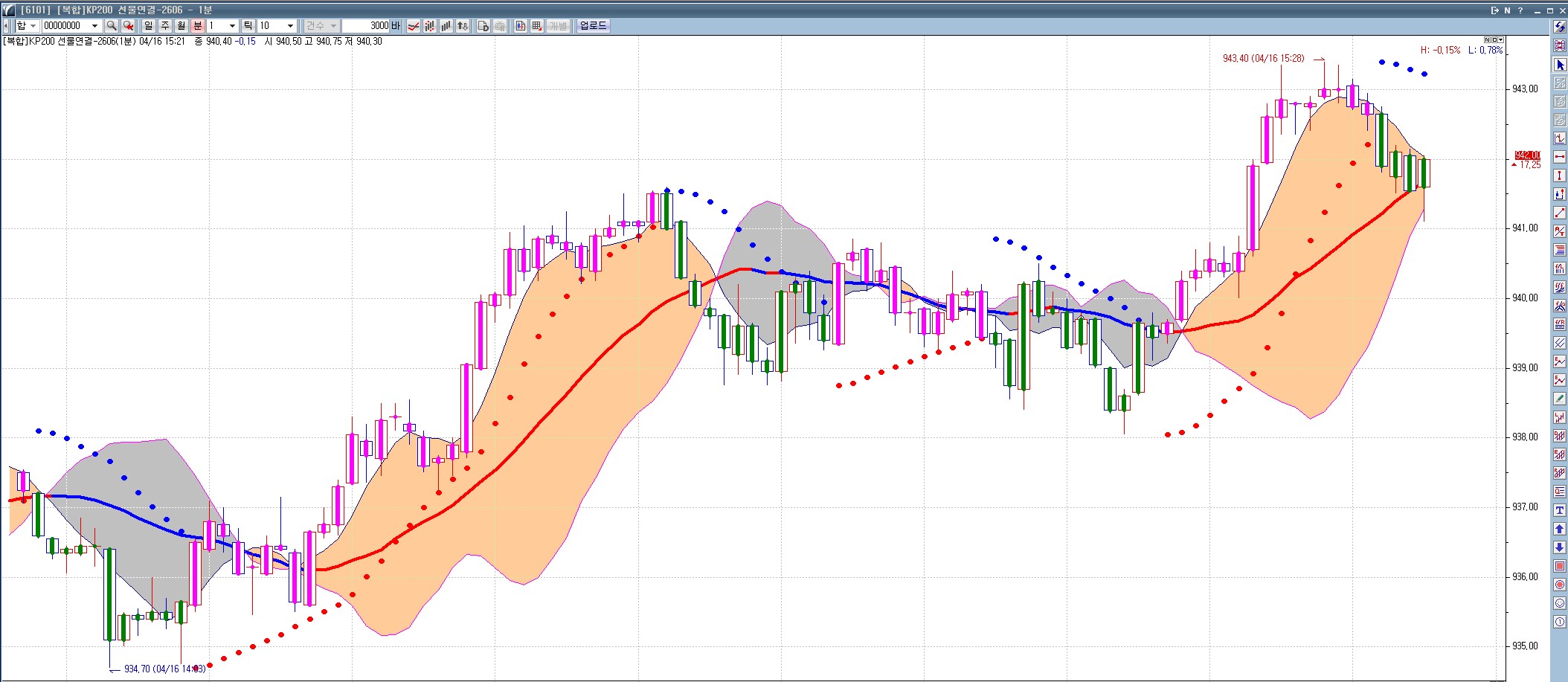 보내주신 수식에 아래과 같이 캔들에 색을 입혔습니다. 하지만 각 캔들마다 매번 색이 칠해지는데 파나볼릭이 상승 또는 하락 전환되는 시점에