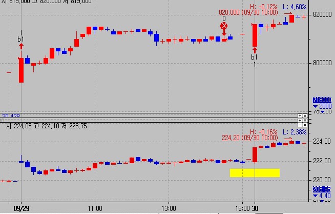 돌려보면 9월30일은 해당되지 않는데 매수진입를 하는데 (5분봉 10분봉 실험)