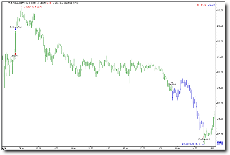 위와 같은 로직을 돌리면 매도의 경우 1point 수익을 초과할경우 청산이 되는데