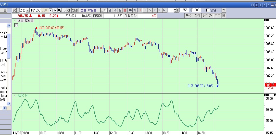 이트레이드의 adx 사용자함수의 내용으로 작성한 식입니다.