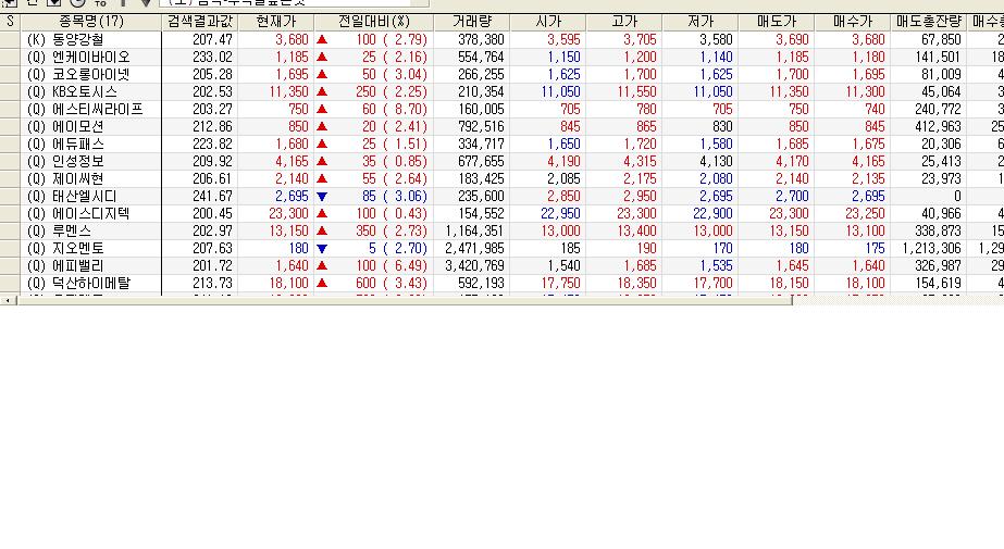 예전 질문을 찾아보니 종목검색의 결과값은 오름차순으로 정렬이 된다고 하셨던데