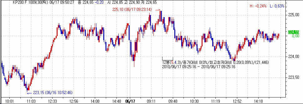 > 저는 선물 틱차트 300 으로 차트를 보며 매매합니다