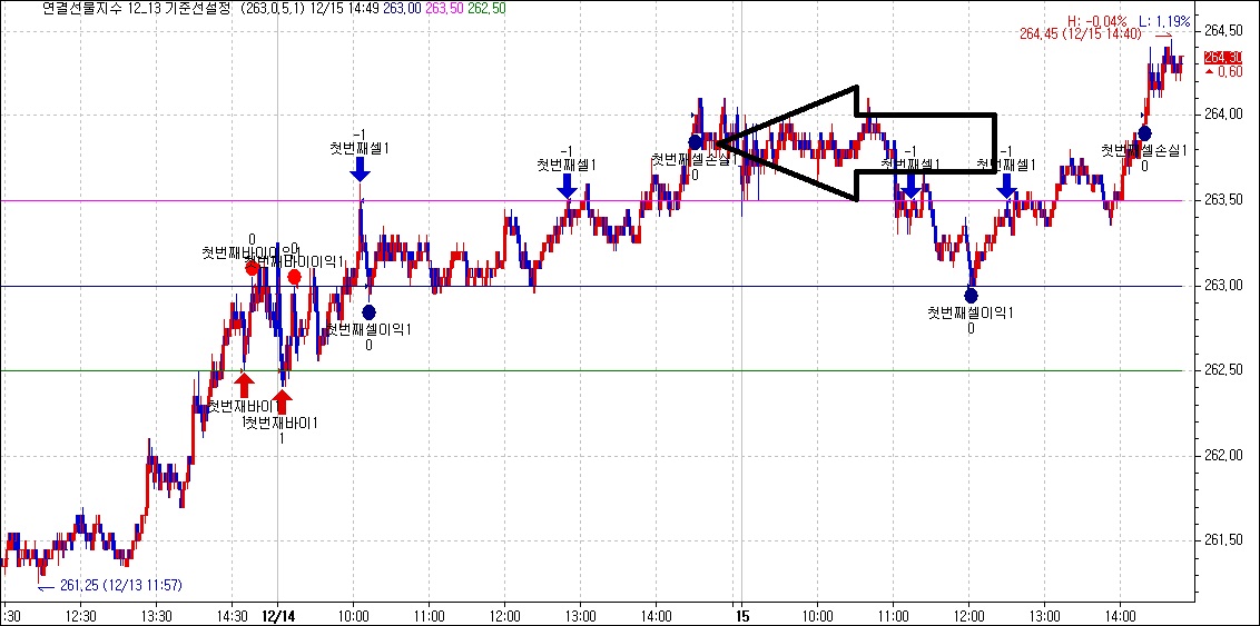 If MarketPosition == 0 and OK== 1 and L > var1 - n1 and entriestoday < count and IsExitName("첫번째바이손실1") == False Then