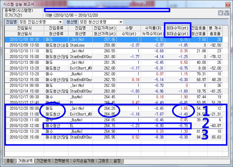 보시는 항목은 최대수익 최대손실값입니다.