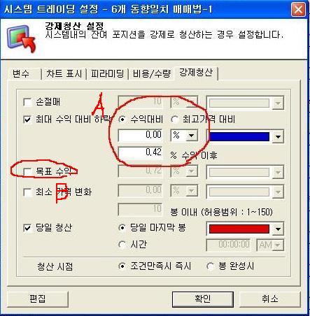A 부분으로 설정을 하면 매매횟수나 이익에서 많은 차이가 납니다.