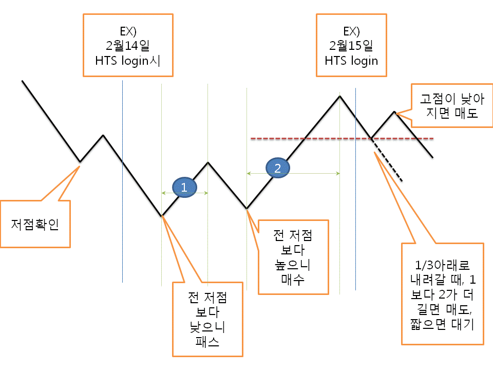 #2번길이의 3분의 1이상 안나려 간경우 고점이 이전 고점보다 작으면 청산