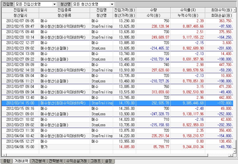 위 표에서와 같이 2012/03/14 15:00에 SetStopTrailing이 그대로 작동하고 있읍니다.