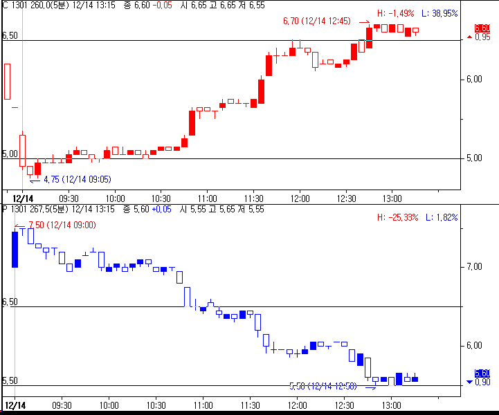 2. 각 콜 풋옵션 차트에서 수평선을 자동적으로 긋게 하고싶어요.