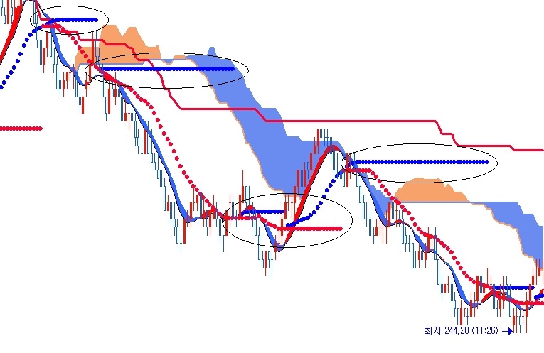 > 첨부파일처럼 이평선이 상승하다가 아래로꺽이거나 하락하다가 위로꺽이면