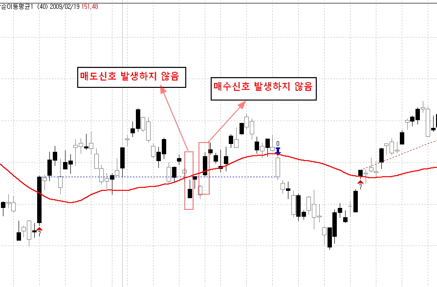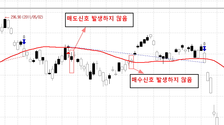 선물차트 일봉으로 적용시 중간중간에 신호를 인식하지 못하는 경우가 발생하는데요
