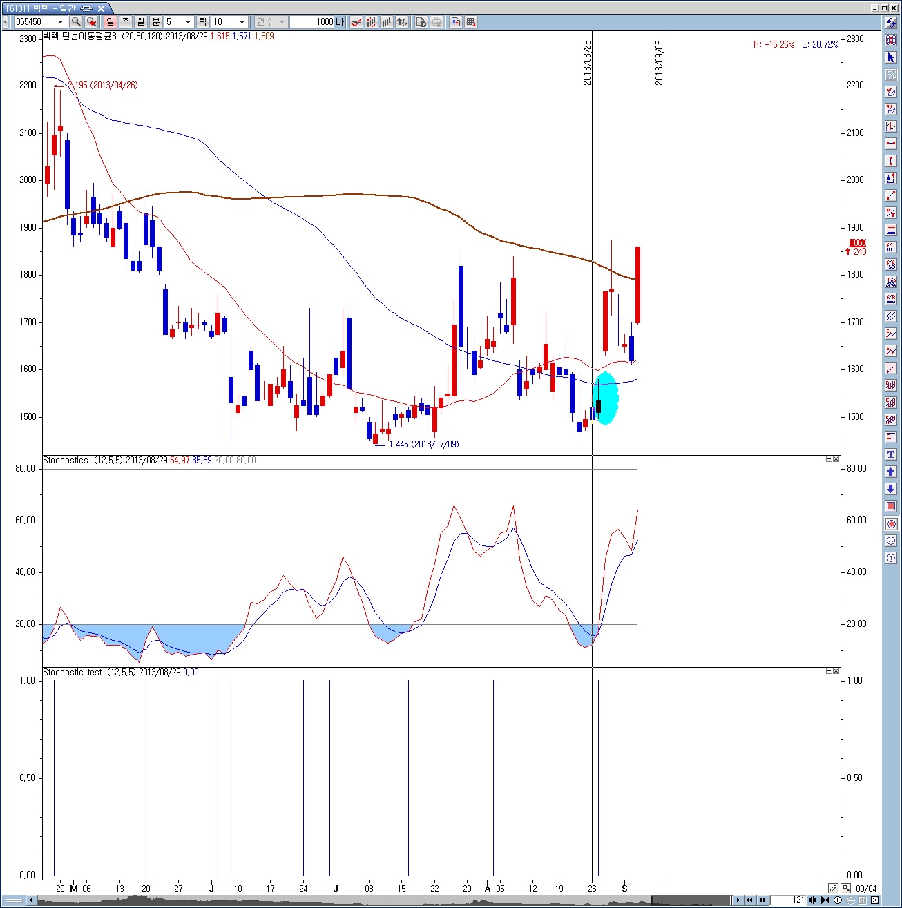> 스토케스틱 검색식 문의 드립니다.