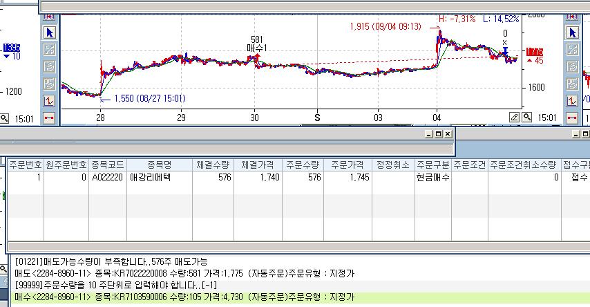 첨부사진 좀 봐주세요. 실재 매매 테스트 중인데요.