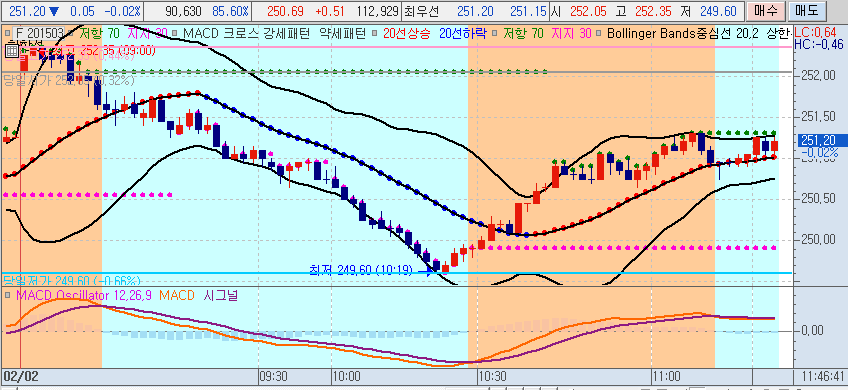 > 첨부한 이미지는 키움증권 MACD 크로스 발생시 바탕색이 바뀌도록 설정한 화면인데요.