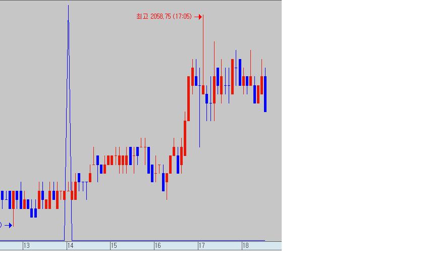 2.시간이 14시가 되면 그림처름 수직선으로 챠트에 나타나게 하는 지표을 부탁드립니다.