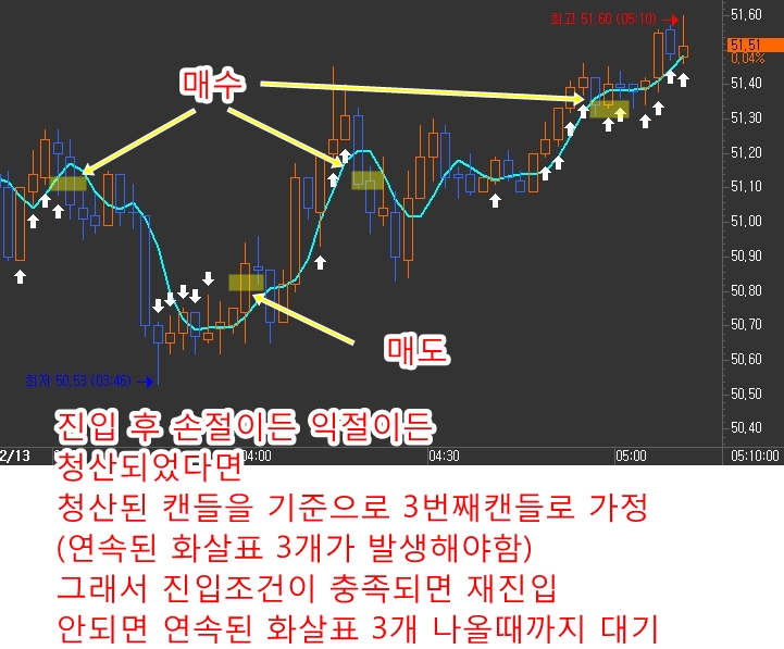 저 스크린샷에 나와있는 화살표가 매수쪽이든 매도쪽이든 3개가 발생 후