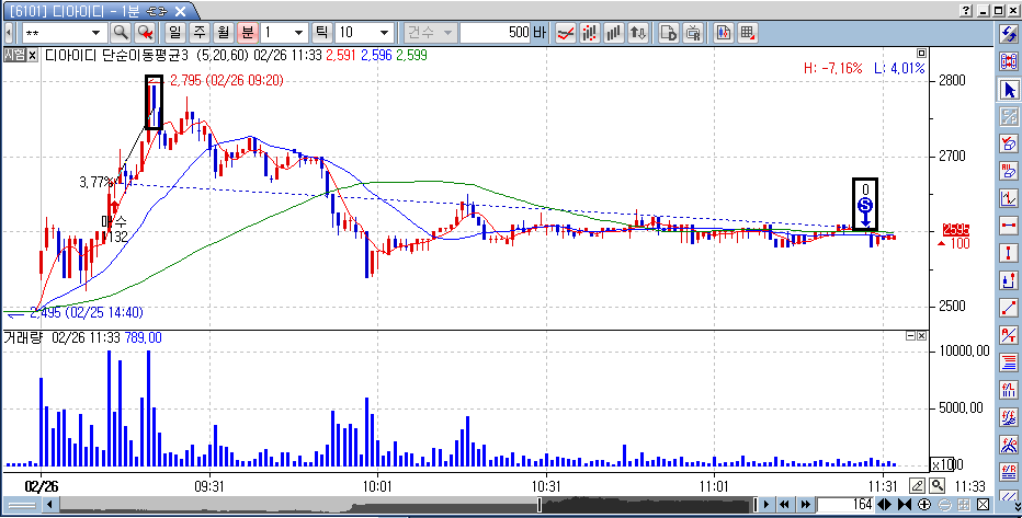 예상대로라면 그림에서 앞 표시부분에서 매도가 됐어야하는데...