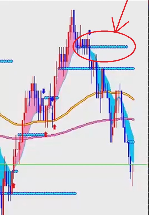 혹시 빨간 원 안에 있는 하늘색 선 처럼 차트에서 옆으로 나오는 지표가 있는지 있다면 그 지표가 무슨 지표인지 궁금합니다.