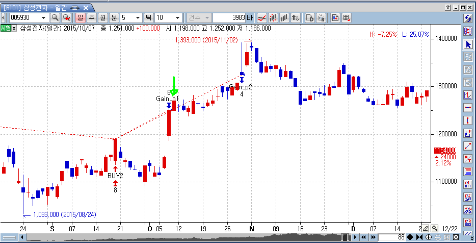10월7일 종가에 2개 청산시키고 다음날도 양봉이라 수익이 나야할것같은데