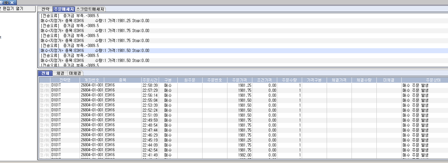 오류메세지만 계속 발생 합니다.(증거금은 충분함)
