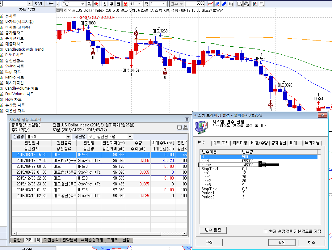 해외선물입니다(us 달러 인덱스). 장시작/종료(월요일) 07:30 ~ 다음날 06:10,