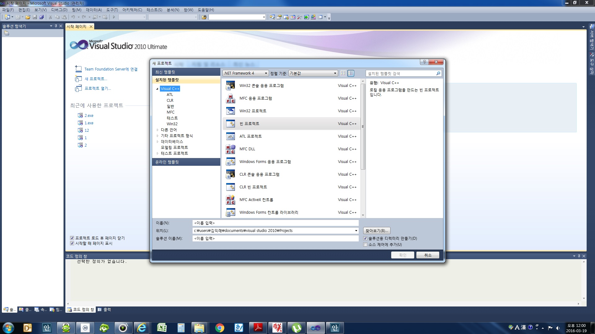 visual studio 2010 ultimate 실행한 다음 새로만들기에서 뭐로 만들어야 하는지 부터 막힙니다;;; 알려주세요 ㅠㅠ