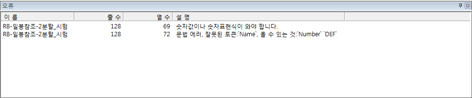 1. 오류메세지가 나온 줄은 다음과 같습니다.